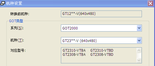 選“轉換為GOT2000數據或GS系列數據后....”,點確定,稍后會出現機種設置窗口: