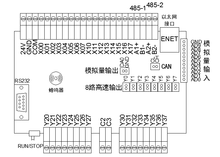 功能:高速輸入輸出/模擬量輸入輸出/485通信/CAN擴展/以太網通信