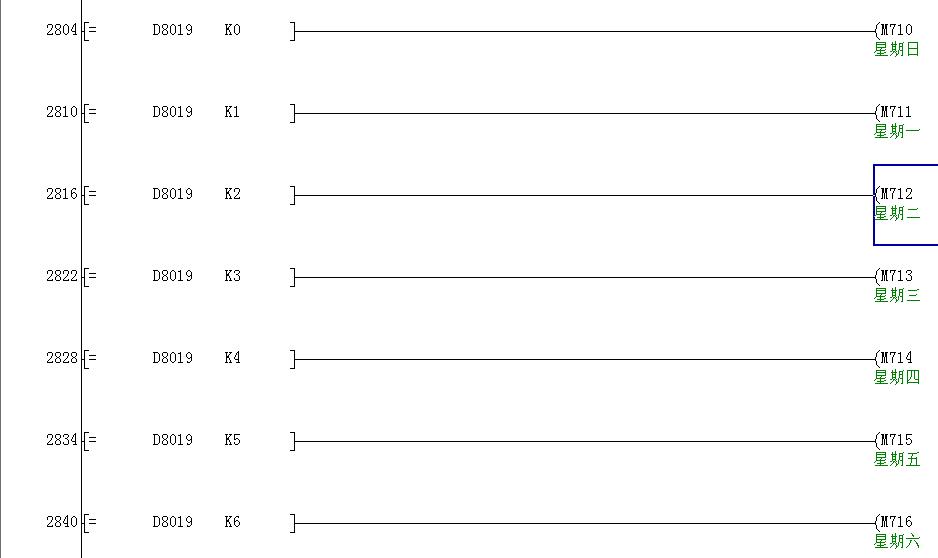D550起是觸摸屏的時,分設定寄存器,M700-M706是用與不用選擇,M710-M716就是我上面加上去的星期幾,可以用d8019直接寫。測試允許是我們機器上用的不必理會。