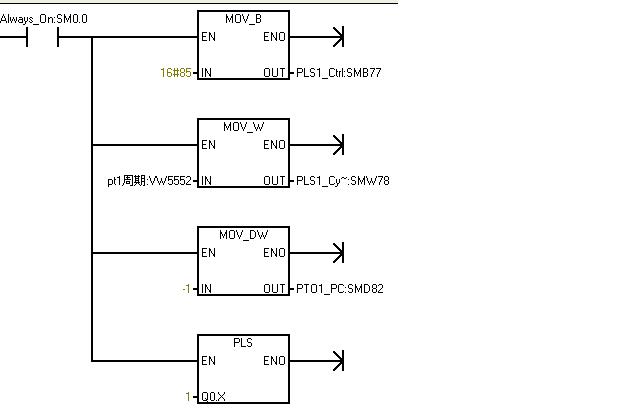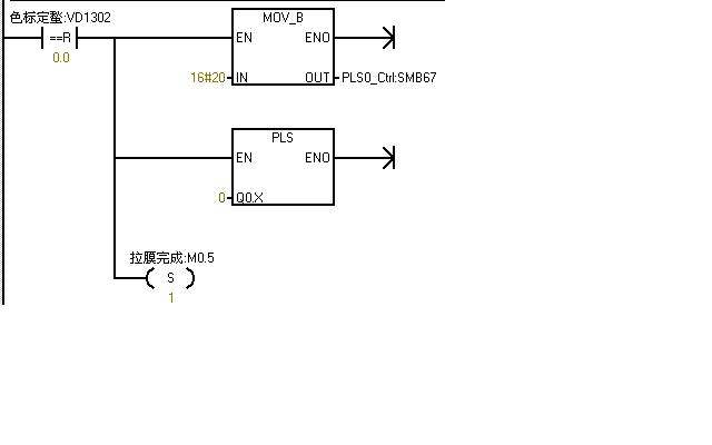 第一張我要明白為什么SMD82傳送一個-1給它,有什么特殊含義嗎?我看說明范圍沒有負值傳送的,第二張圖Q0.0的表示拉膜的脈沖輸出口,M0.5是拉膜完成的位,我感覺看程序是脈沖輸出和完成標志位你同時動作的,難道不是Q0.0脈沖發完,M0.5才置位嗎?不解,求解釋。