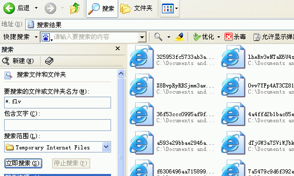 此圖是在上圖里選擇搜索“*.flv”,當搜索完成后,右鍵“打開所在的文件夾”