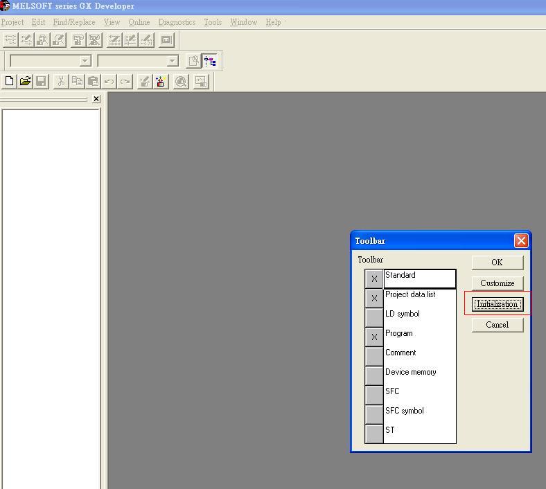 引用引用樓主llllll于2011-10-19 11:57發表的 三菱PLC軟件問題? : 我的三菱PLC軟件打開新建畫面以后,原有的左上角的四排圖標只剩下兩排了,怎么操作也不能恢復。重新安裝軟件也不行。少了編程寫入圖標和它上面那一排,哪位大師能指點一下?