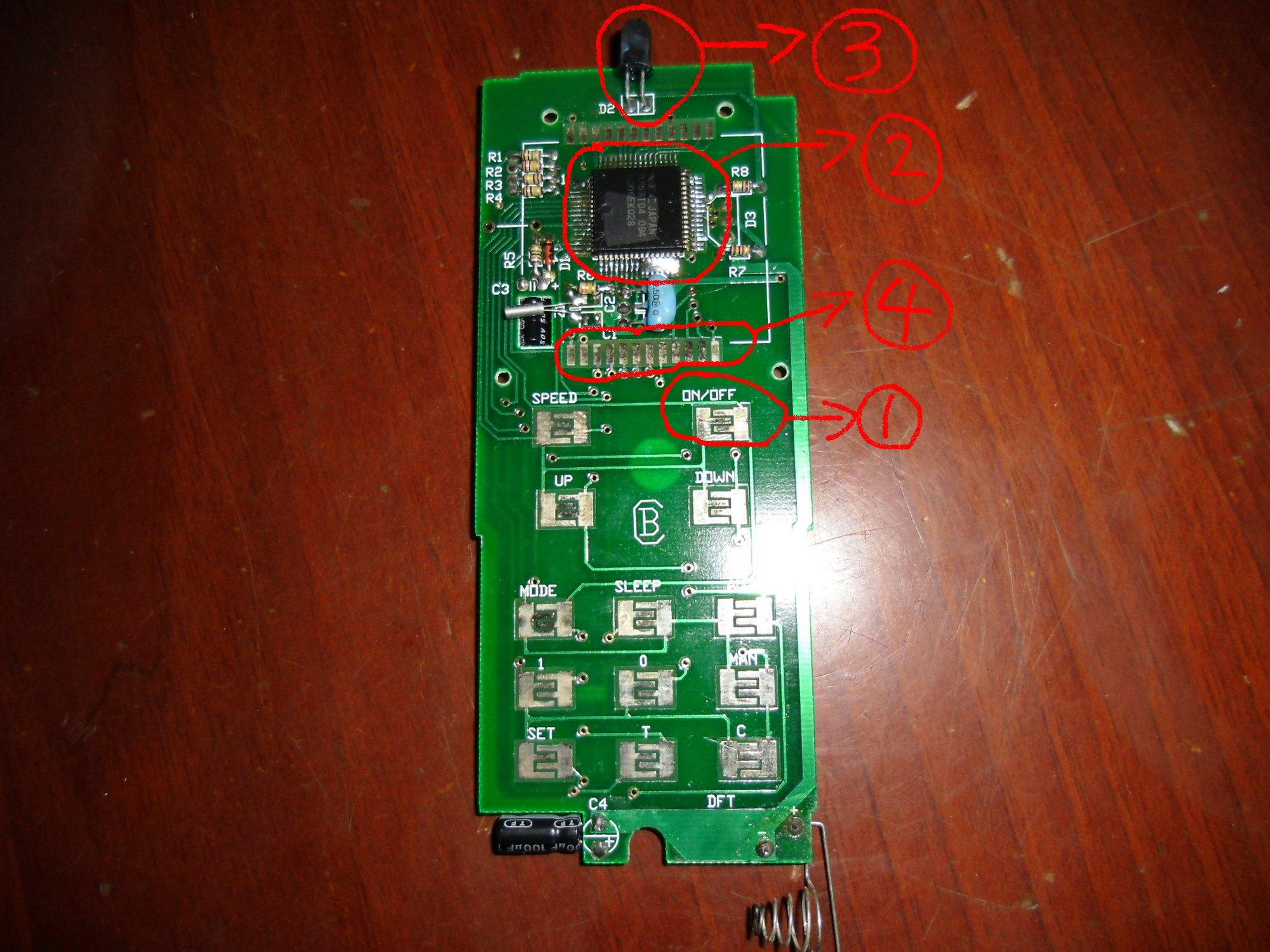 IC1內部的掃描信號發生器產生五中不同時間的掃描脈沖信號,由5~9腳輸出送至鍵盤矩陣電路。當按下某一鍵時,相應于該功能按鍵的控制信號分別由10~14腳輸入到鍵控編碼器,輸出相應功能的數碼信號。然后由指編碼器輸出指令碼信號,經過調制器調制在載波信號上,形成包含有功能信息的高頻脈沖串,由17腳輸出經過晶體管BG放大,推動紅外線發光二極管D發射出脈沖調制信號。