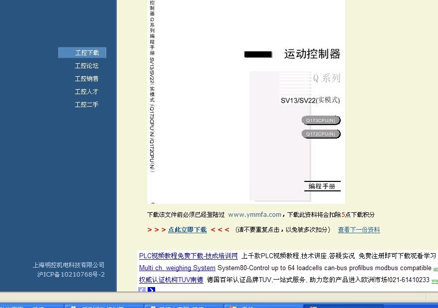 請問工控人家園工控下載》三林Q系列PLC手冊》Q系列運動控制器編程手冊—實模式文件怎么下不了啊??