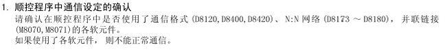 FX3U加上一個FX3u-422-bd的擴展,已經接一個觸摸屏,我又想PLC同時接觸摸屏和接電腦做調試,要怎么樣設置才行?觸摸屏是昆侖通態MCGS,我試過用MCGS里面的“三菱_FX系列編程口”進行通訊,就會出現PLC連接觸摸屏,就沒法和電腦通信的情況,請問高手要如何解決啊? 解決了,3樓說的沒錯,把參數寫進去就可以了,但具體是什么參數呢,我看了下FX的通信功能手冊 ![]() 然后寫入這段程序就可以了 ![]() [ 此帖被drw_08在2012-01-07 23:26重新編輯 ] |
