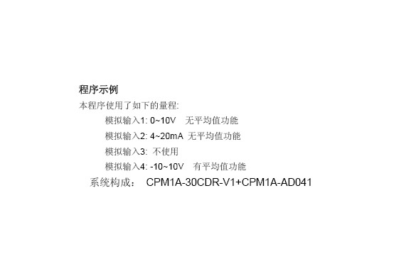 現(xiàn)在手里有個(gè)歐姆龍的CPM1A-AD041,主機(jī)是CPM2AH-60CDR,和一節(jié)1.5V的電池,想測試一下AD041模塊的好壞,大家能不能幫忙寫個(gè)程序,我接上1.5v電池試試這4個(gè)通道的好壞。比如寫程序?qū)?個(gè)通道轉(zhuǎn)換的數(shù)值傳送到4個(gè)寄存器中,我監(jiān)控一下有沒有數(shù)據(jù)。接上1.5V,正常轉(zhuǎn)換的數(shù)字量應(yīng)該是多少。