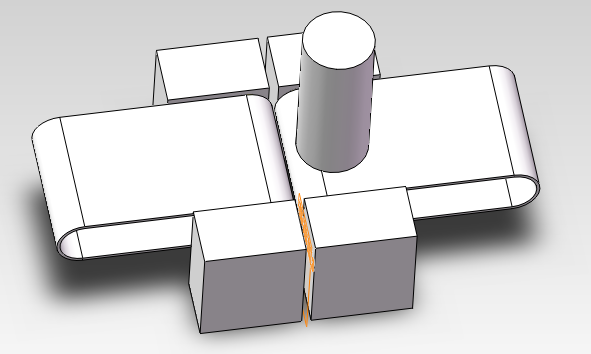 增加一套機械手,用兩個氣缸(一個用來夾緊、一個用來傳遞),一套夾具配合電路可完成自動化過度。