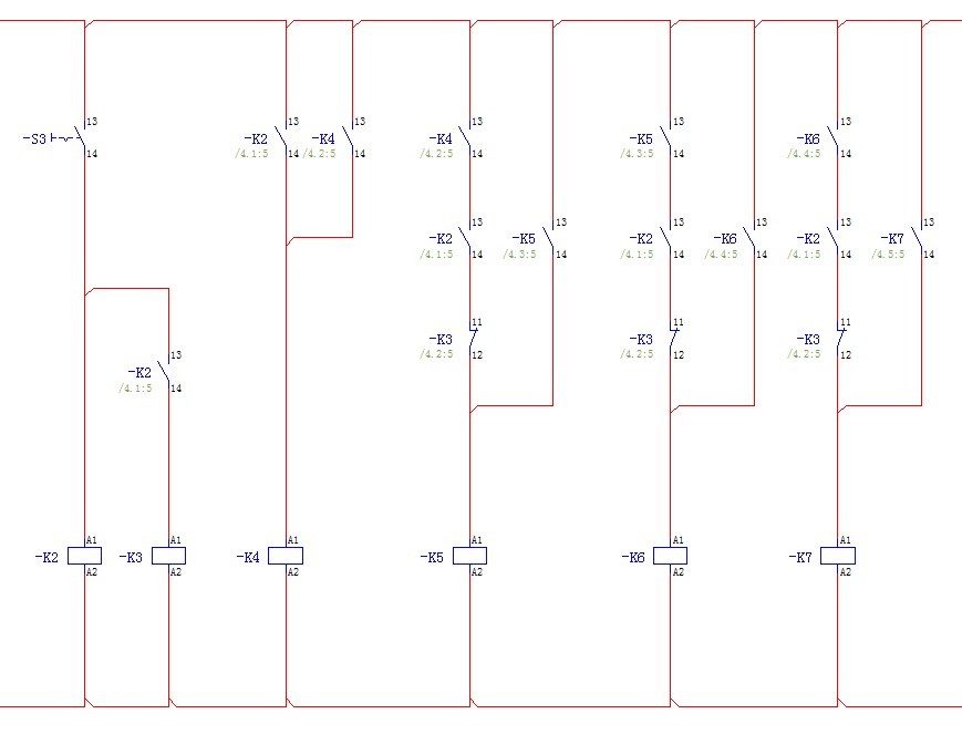 引用引用第1樓hanqin于2012-05-12 12:36發(fā)表的 :應(yīng)該是按鈕控制中間繼電器,中間繼電器的常開點與上一個電機接觸器常開點串聯(lián),第一個直接啟動,中間繼電器的常開點點數(shù)就是電機的個數(shù)。