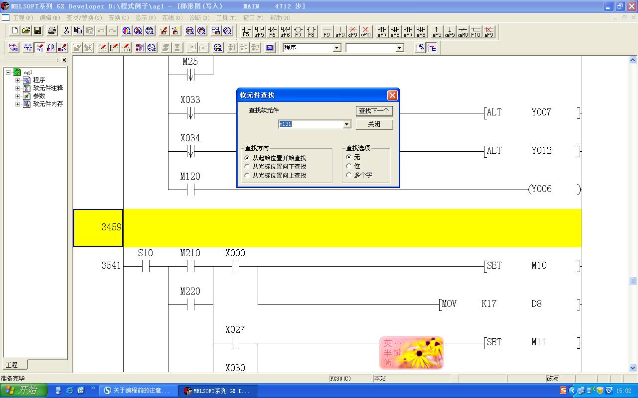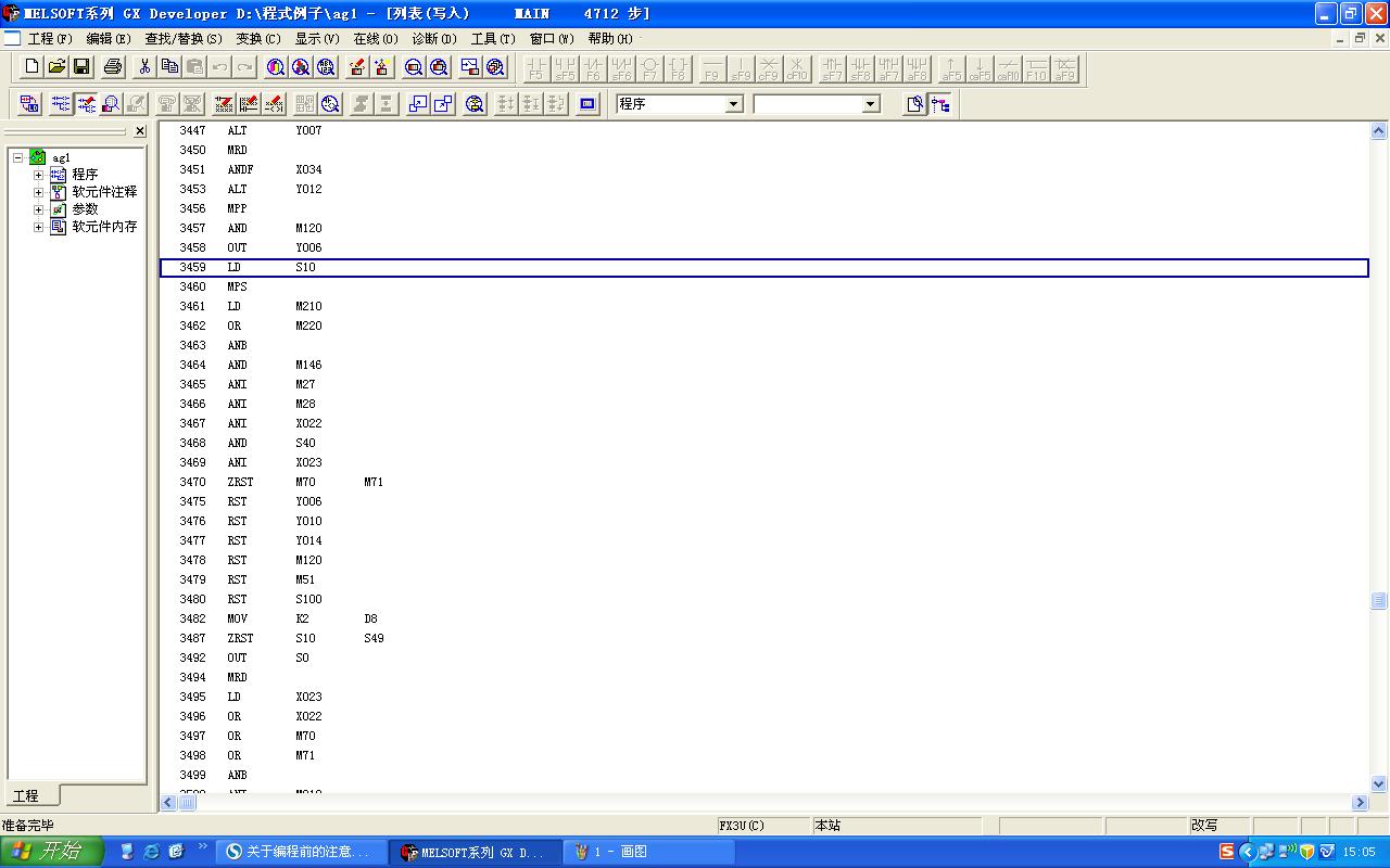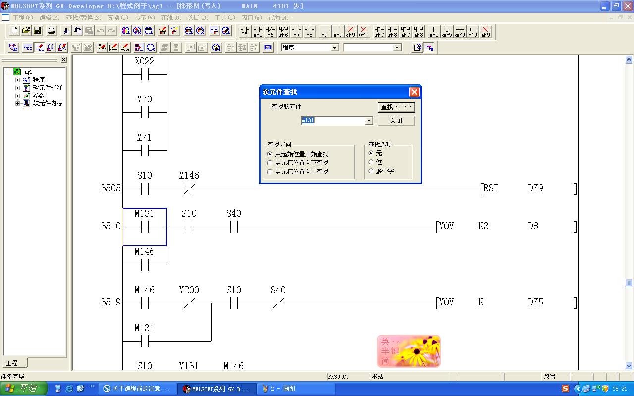 在很多的梯形圖中,由于著者可能會(huì)有一些不符合規(guī)定的編程手法,導(dǎo)致部分程序無(wú)法顯示出來(lái)以一片黃色的區(qū)域來(lái)顯示,這時(shí)我們可以這么來(lái)處理:首先將程序轉(zhuǎn)換成指令表程序,然后再在對(duì)應(yīng)不好地方修改太冗長(zhǎng)的程序,把它分解成若干的小程序,或是有錯(cuò)誤的地方也可以修改,修改之后再轉(zhuǎn)換成梯形圖程序,如下幾個(gè)圖片所示: 查找M131定位在黃色區(qū)域,說(shuō)明此區(qū)域是有程序的 轉(zhuǎn)換成指令表程序,并修改,一般都是由于一段程序太冗長(zhǎng)了所致 修改完畢再轉(zhuǎn)換過(guò)來(lái),查找M131,已顯示出里面的程序。 |