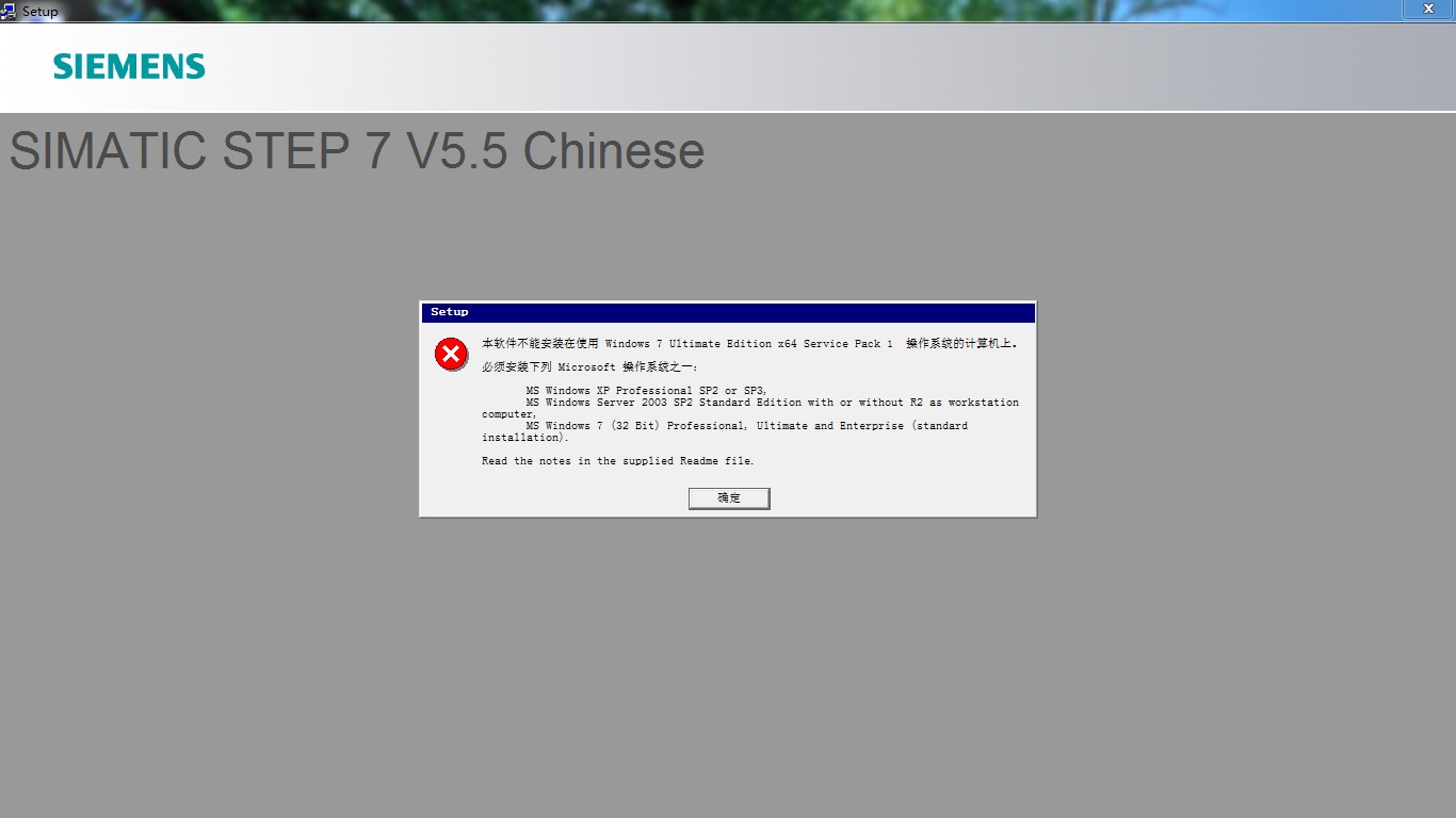 2、Step7 V5.5 Sp1才能在Win7 64Bit OS上安裝,要么重裝你的系統,要么更換Step7的版本,請自行斟酌。