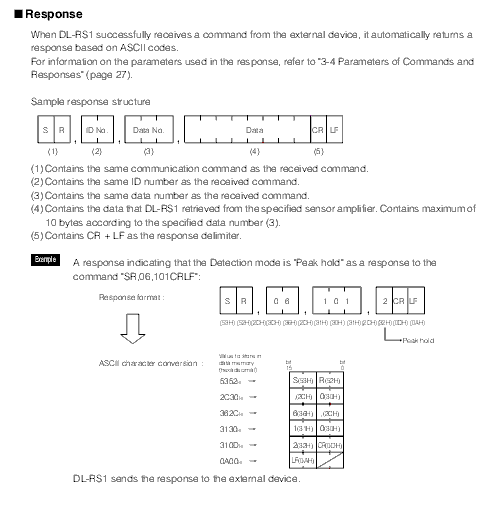請(qǐng)確保 DL-RS1A 和外部裝置有一致的通信速度、數(shù)據(jù)長(zhǎng)度