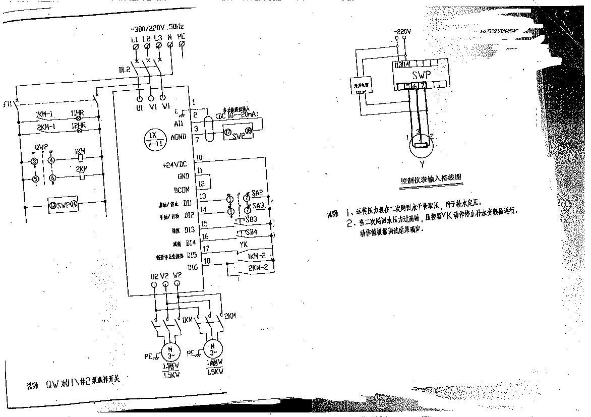 更換變頻器后,不知道根據這個電路選哪個“宏”,另,低于一定壓力電機工作,到達一定壓力工作停止應如何設置。謝謝各位。