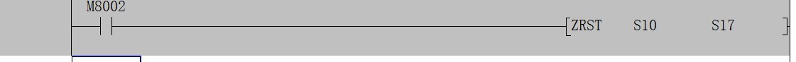 PLC得電運行時復位S10到S17之間的8個狀態繼電器,ZRST就是批次復位的意思。M8002就是初始脈沖A接點(閉合),程序運行時輸出一個掃描周期為ON。