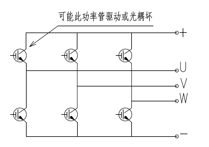 臺達B系列1.5KW變頻器,因為該變頻器只檢測2相,正好是沒有檢測電路的缺相。所以沒有報警。檢查驅動光耦和逆變模塊。