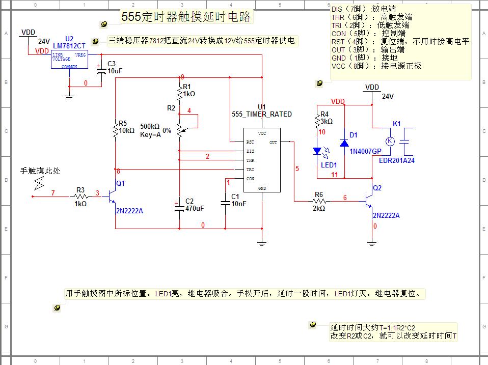 這張圖是在網上搜的,可能大家在網上也看到過。但按照圖中所示,把電路搭建起來,并不能達到觸摸開關的效果,我試的時候電路對觸摸沒反應。