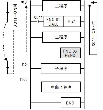 在順控程序中對需要多次使用的一段程序可以單獨(dú)編輯為一個(gè)子程序,使用子程序調(diào)用指令CALL執(zhí)行該段程序。CALL一般需要與FEND指令和SRET指令配合使用。