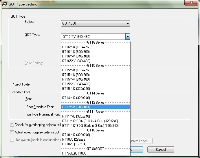 第一次用三菱觸摸屏,選型GT1275-VNBD,然后裝了個(gè)GT designer2-2.48觸摸屏編輯軟件,但里面選沒(méi)有找到 GT12**的類型,應(yīng)該用那個(gè)代替呢?