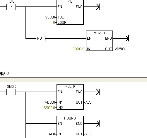 這段程序的目的應該是,I0.0如果接通執行PID運算,結果是從VD508輸出的,