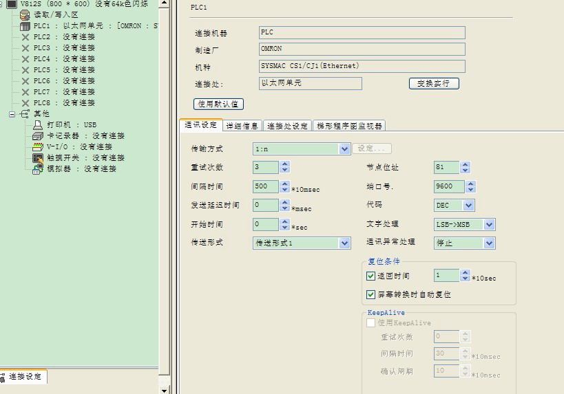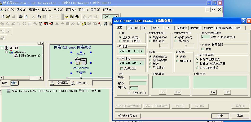 如圖:PLC端以太網 CS1W-ENT21 網絡號5,節點號 81.