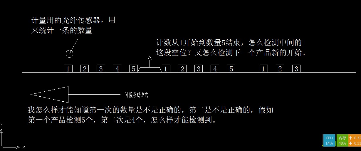 光就你給出的圖片說明,如果這個傳送帶速度比較恒定,則可以采用你自己的那套思路。就是采用檢測開關(guān)的下降沿開始計時,當(dāng)時間大于一定值則判斷為檢測結(jié)束。
