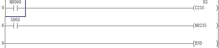 使用方法和1S/1N/2N一樣的。假如你用C235,用一個指令如LD M8000  OUT C235   這樣你給X0脈沖就是上計數。如果接通了M8235就是減計數了
