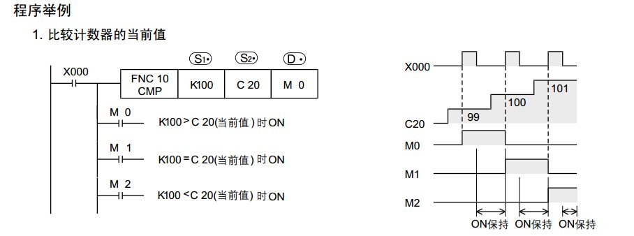 CMP K1>C0 m1=1, K1=C0 M2=1 ,K1<C0 M3=1 應該就是這樣接通的。還有下個指令功能詳解吧 ![]() |