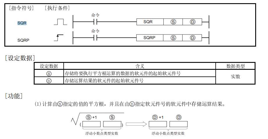 FX3U的PLC    有2進制浮點數的開方 自己可以查資料 上圖