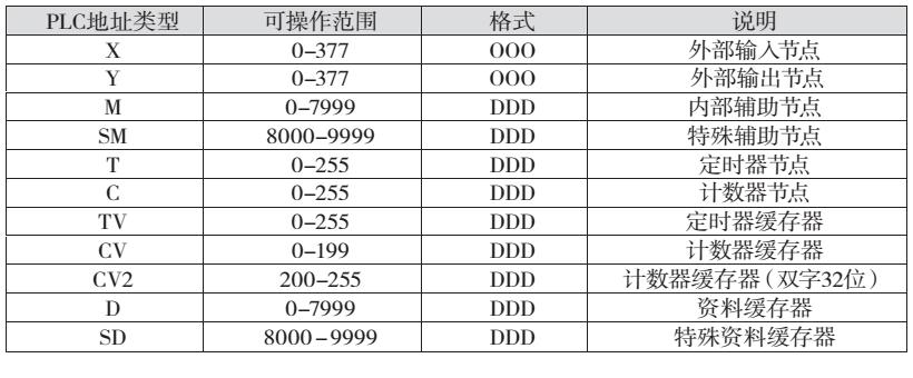以下是對應三菱FX的定義(其他品牌也是大差不差)