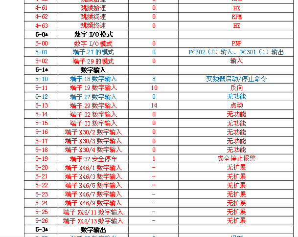 ![]() 按照網(wǎng)上的說明書調(diào)整了一下變頻器,發(fā)現(xiàn)怎么不跟手冊的運(yùn)行方式一樣呢? 變頻器端子18在參數(shù)5-10里設(shè)定為8,定義的功能是啟動(dòng)。 端子27在5-12里設(shè)定是16,定義的功能是參考速度0(3-10-0參數(shù)里的預(yù)制速度設(shè)定為10%,也就是5HZ) 端子29在參數(shù)5-13里設(shè)定是17,定義的功能是參考速度1(3-10-1參數(shù)里的預(yù)制速度設(shè)定為40%,也就是20HZ) 端子33在參數(shù)5-15里設(shè)定是18,定義的功能是參考速度2(3-10-2參數(shù)里的預(yù)制速度設(shè)定為20%,也就是10HZ) 好了,端子定義已經(jīng)完成。 1、現(xiàn)在嘗試將公共端12和啟動(dòng)端18短接后,變頻器馬上就5HZ運(yùn)行了,這是怎么回事呢?我還沒有短接12和16,怎么會(huì)運(yùn)行預(yù)制速度0呢? 2、又嘗試了一下將端子12和端子18短接,端子12和端子27,變頻器是20HZ運(yùn)行了,怎么速度成了預(yù)制1的速度了,我定義的27號(hào)端子是預(yù)制0的速度啊。 3、接著又嘗試了一下將端子12和端子18短接,端子12和端子29,變頻器是10HZ運(yùn)行了,怎么速度成了預(yù)制2的速度了,我定義的29號(hào)端子是預(yù)制1的速度啊。 4、接著又試了將端子12和端子18短接,端子12和端子33,變頻器是15HZ運(yùn)行了,查了一下參數(shù)3-10-4里面是設(shè)定的30%,也就是15HZ,怎么短接33端子,功能又成了預(yù)制4的速度了呢?上面我設(shè)置的是預(yù)制2的速度啊。 這是怎么回事?亂套了?現(xiàn)在3-10-0里面的速度成了啟動(dòng)速度,短接12和27應(yīng)該是5HZ運(yùn)行,怎么成了20HZ了,27端子定義的是預(yù)制速度0啊。怎么回事?請(qǐng)前輩們指教一下。謝謝了。  |