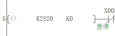 觸點比較指令,【<> k2s20 k0】當位組合元件k2s20(即s20~27)的值不等于0時,該觸點為ON