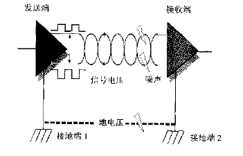 RS-232串行通訊的標(biāo)準(zhǔn)電壓是參考接地端而來(lái)。發(fā)送端由發(fā)送數(shù)據(jù)端參考發(fā)送端的接地電壓發(fā)送數(shù)據(jù),接收端由接送端與接送端的接地電壓來(lái)接收數(shù)據(jù)。如果中間有噪聲進(jìn)入,則會(huì)產(chǎn)生干擾。