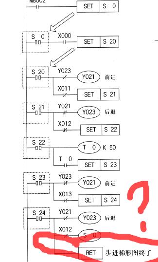 這是看三菱FX系列PLC編程手冊上面的一個步進梯形圖,怎么和我從書上看的編程不一樣,而且這節程序我用軟件編出來軟件顯示最后的RET是錯誤的。