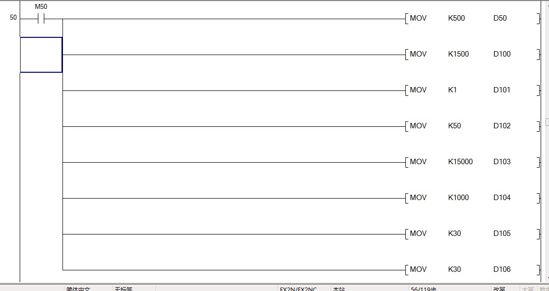 D150的變化要么是32767要么就是-32767,如果設定值為40度,測定的溫度在40度一下都為32767,大于等于40度就是-32767。下面我截了圖我的程序,編程軟件是GX WORKS2