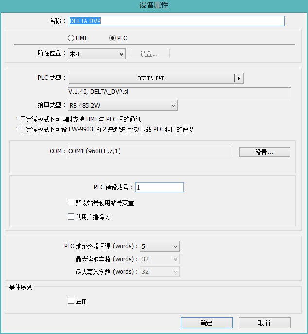 2.注意,PLC(d1120)與觸摸屏通訊參數(shù)設(shè)置需一致,