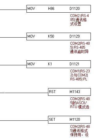 3.注意PLC COM2 (RS-485)的ASCII/RTU 模式選擇 ( M1143  Off 時(shí)為ASCII 模式On 時(shí)為RTU 模式),