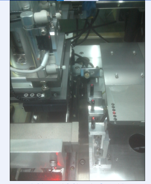 我們公司有臺用PLC控制的貼片機,,轉動軸也就是Z軸右移把長方形的片吸過來,貼到玻璃上,在吸過來的過程中,片都是有點斜度的,,為了校正片的斜度,帶片的Z軸再右移會碰到一條線上的三個光纖傳感器,聽制造機器的廠商說,兩邊的兩個傳感器是為了校正片的,中間一個是為了校正以來再回去定點的距離。,,只要是片斜的,碰到一條線上的三個傳感器每個的時間就不一樣,,然后在向左移,也可能是通過不一樣的時間來用Z軸轉動來校正,校正以后,再右移,就是同一時間感謝應到傳感器了,,這是我說的機器,要右移兩次,