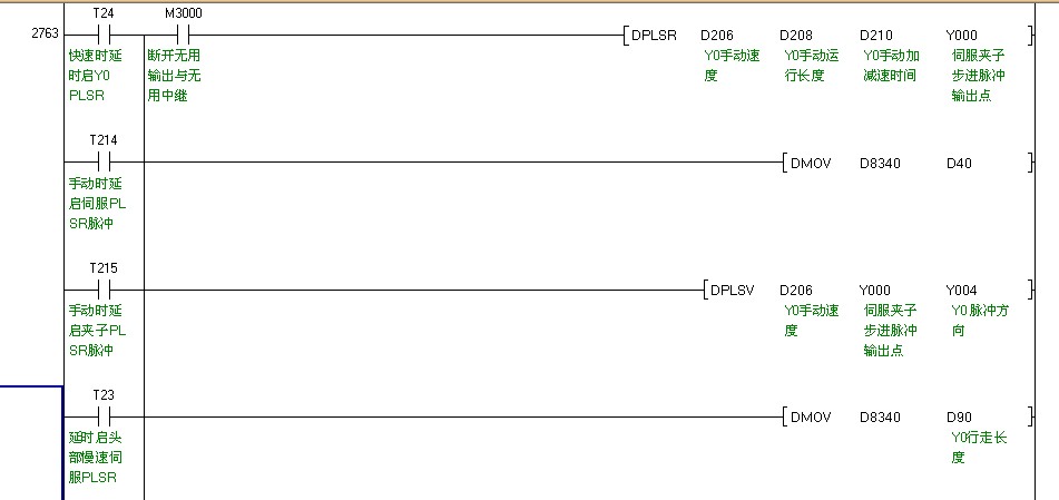 用D8340監控Y0輸出脈沖在威綸屏上顯示脈沖量。用DPLSR  指令時D8340監控不到以發出脈沖量,實際伺服以按設定值走完距離。但用DPLSV時監控D8340有發出的脈沖量。現在我想用DPLSR指令發脈沖,在把D8340發出的脈沖同一個設定值做比較得到一個信號。這個信號來實現控制下一步程序。問題是:用DPLSR指令時怎樣才能監控D8340實進發出的脈沖。并把它傳到一個D內。