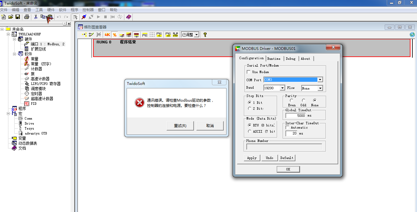 施耐德PLC,型號為TWDLCAA24DRF,連接電腦時出現如圖所示的問題,請各位高手指點迷津。。。!