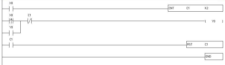 單次起停功能,X上升沿單次啟動(dòng)M0,雙次關(guān)閉M0。用M0的常開或常閉觸點(diǎn),串聯(lián)X的延時(shí)接通觸點(diǎn)(比如T0),驅(qū)動(dòng)你想要的動(dòng)作就行了。希望能夠幫到你。