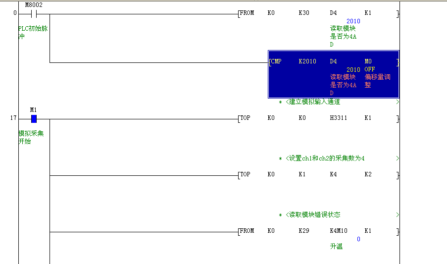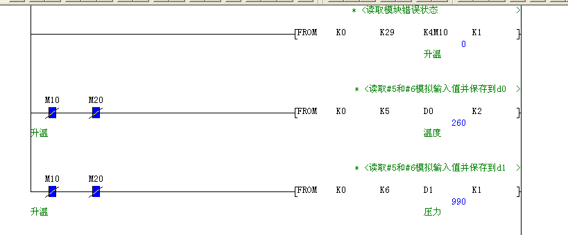 PLC是三菱fx2n 32mr的模擬量轉(zhuǎn)換模塊是4AD與4DA。 壓力變送器是順來達的SLDYB-2088量程為-0.1~0 電流輸入為4~20ma;溫度變送器用的是導軌式溫度變送器量程0~100攝氏度電流輸入為4~20ma分度號是pt100。