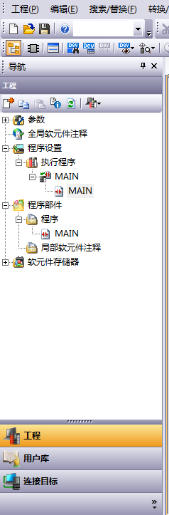 呃,GX Works2。上面是程序設定,要執(zhí)行程序MAIN。下面是程序本體,編輯用。同1、2樓