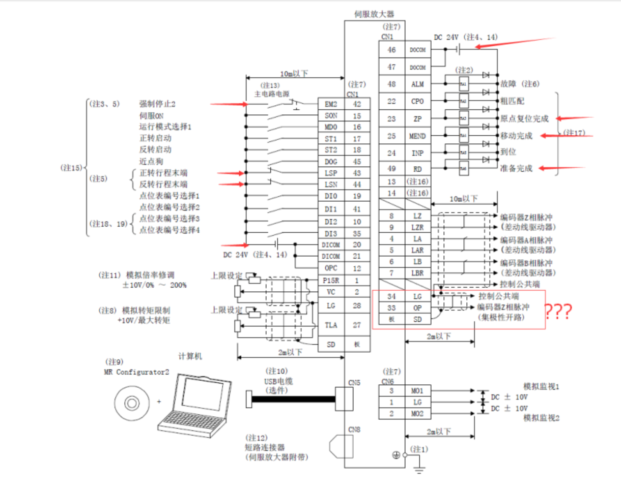 問號處的是編碼器Z相脈沖,,在3Uplc用DSZR回原點時可以用到,33 ,34一個LG接com端,一個OP接PLC輸入(X0~X7)......