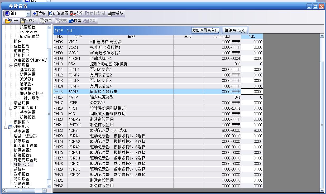 我用的MR-JE-10A的參數(shù)最多就到PF參數(shù),手冊上也是,這個PH參數(shù)居然沒見過。 難道我用的是假貨? |