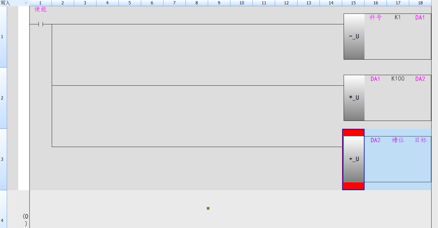 運(yùn)算三個(gè)數(shù)值必須都是16位或者32位,DA2是雙字,槽位和目標(biāo)是單字