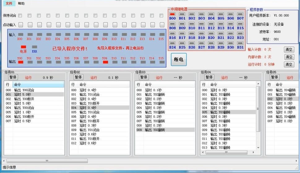 仿真運行時,可直觀看到是如何運行的,看到中間繼電器狀態,計數/計時,也可手動干預運行