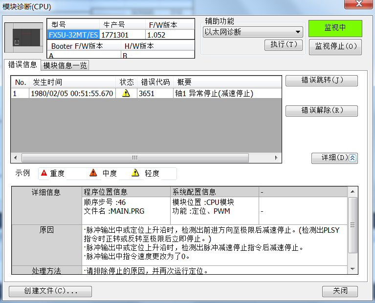 FX5U定位測試,感應到極限(X5,X1)PLC的ERR指示燈就亮,定位運動正常。可以把這個報警屏蔽嗎,不讓ERR指示燈亮。我的測試程序如下