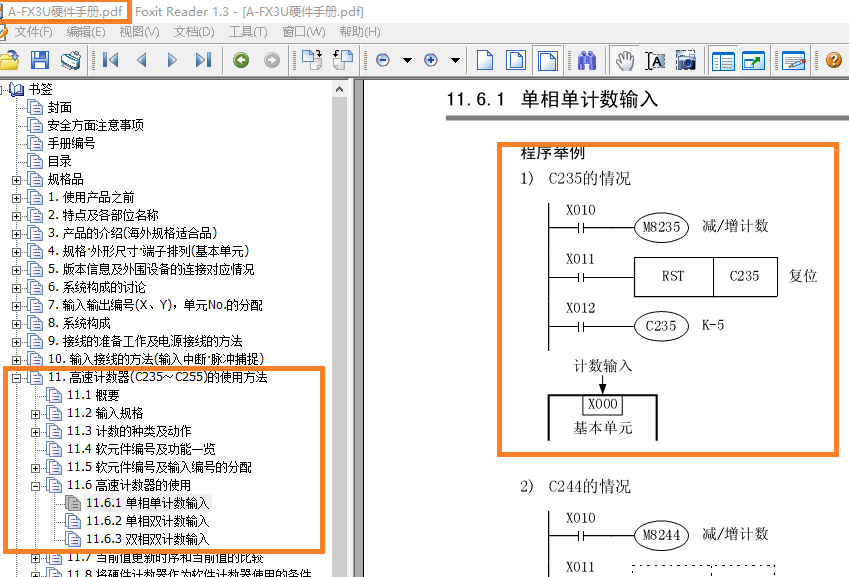 看FX3U硬件手冊(cè),或者FX3U隨機(jī)帶的那張紙,或者FX3U編程手冊(cè)高速計(jì)數(shù)那部分 ![]() |