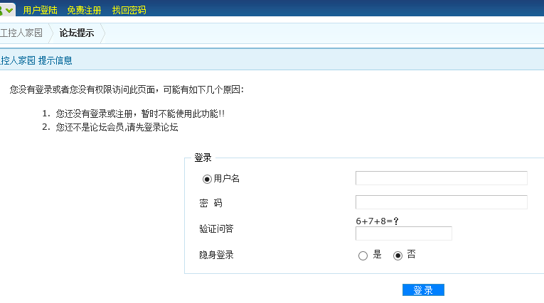 各位親,本人出差了半個(gè)多月回來(lái),電腦也更新了,也換了新系統(tǒng),以前所有保存的密碼都沒(méi)有記憶了。當(dāng)我想登陸工控時(shí),發(fā)現(xiàn)沒(méi)有像以前的電腦一樣點(diǎn)擊自動(dòng)登陸了,然后嘗試找回密碼,彈出以下對(duì)話框,接著嘗試加版主賬號(hào),給他留言,結(jié)果都是返回到登陸的畫面。請(qǐng)問(wèn)樓主有否其他更簡(jiǎn)化的辦法,或者能否仿照其他有關(guān)的軟件,加郵箱加手令加隨機(jī)短信來(lái)重置密碼。不是的話真的忘記了就無(wú)法再登陸了,這樣也不太合理吧