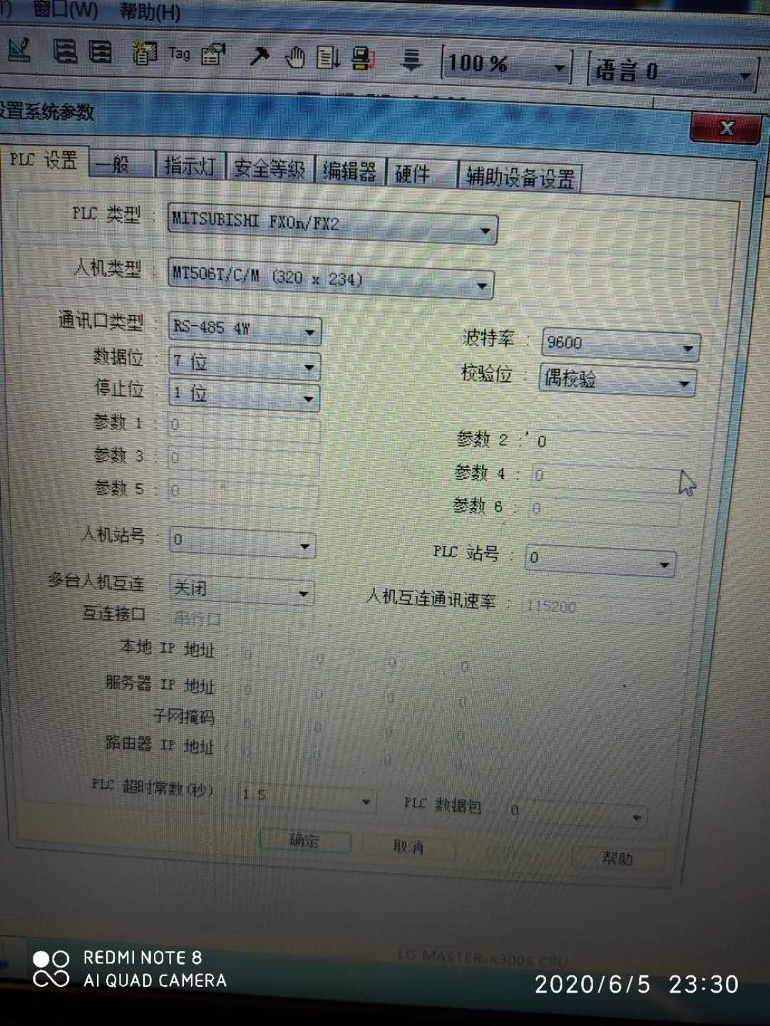 手邊有一個(gè)禾川的PLC 型號(hào)是LX1N的,與威綸的觸摸屏通訊不上,威綸的觸摸屏里面選擇的是 FX0N FX2  FX2N驅(qū)動(dòng)都連接不上,人機(jī)側(cè)的通訊口可以調(diào)整,不知道PLC編程口的參數(shù)如何設(shè)定?有相關(guān)經(jīng)驗(yàn)的幫忙指點(diǎn)一下。 已知PLC的編程口是好的,因?yàn)镚X-WORKS軟件能夠讀到程式。通信線是從網(wǎng)上找的線路圖自己做的!