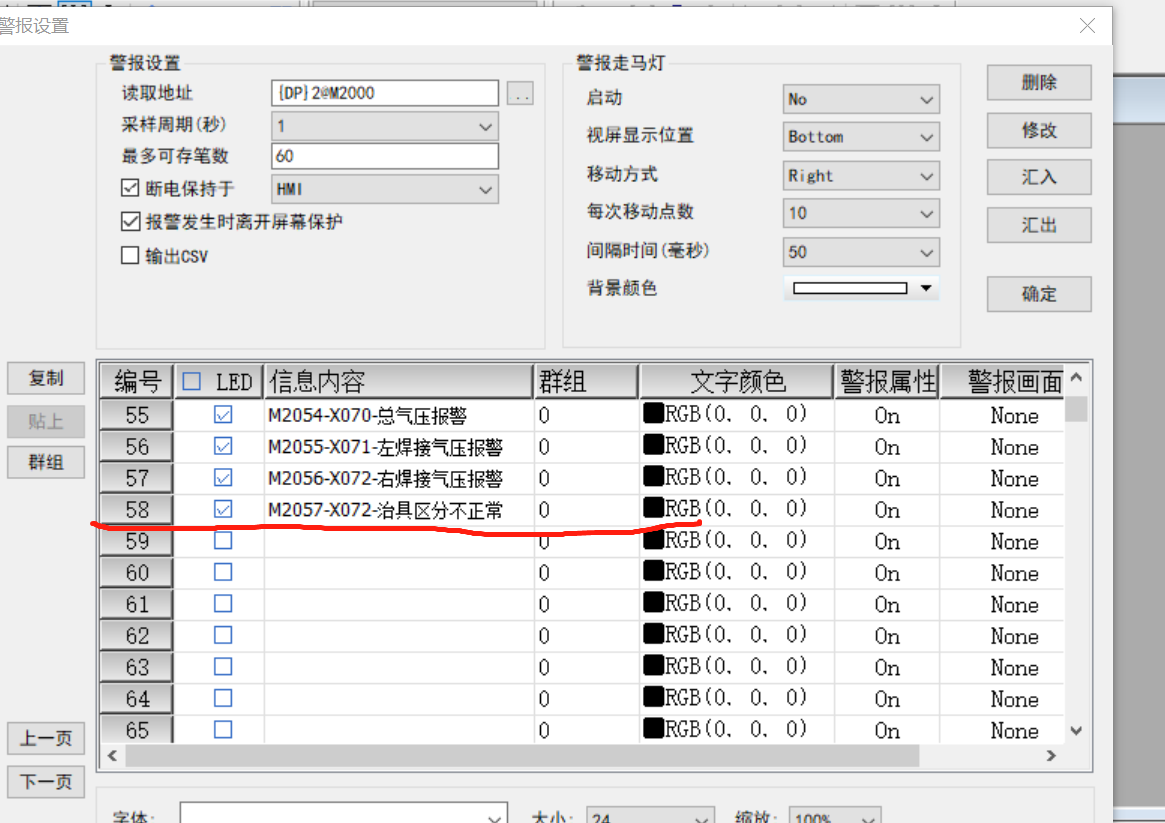 把后面不用的位文字改成跟背景色一樣的顏色,報(bào)警信息文字顏色區(qū)分開來,即使觸發(fā)了也不會(huì)看到什么,要么這個(gè)區(qū)間的位就不要用了 |